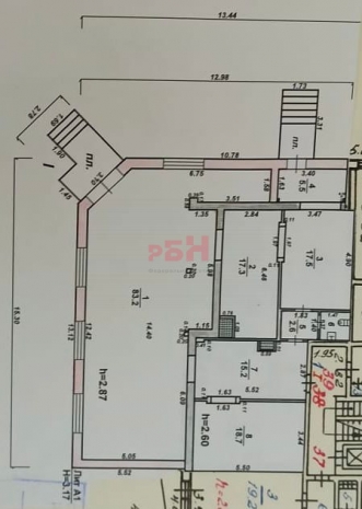 - Помещение разделено на несколько кабинетов и один большой зал