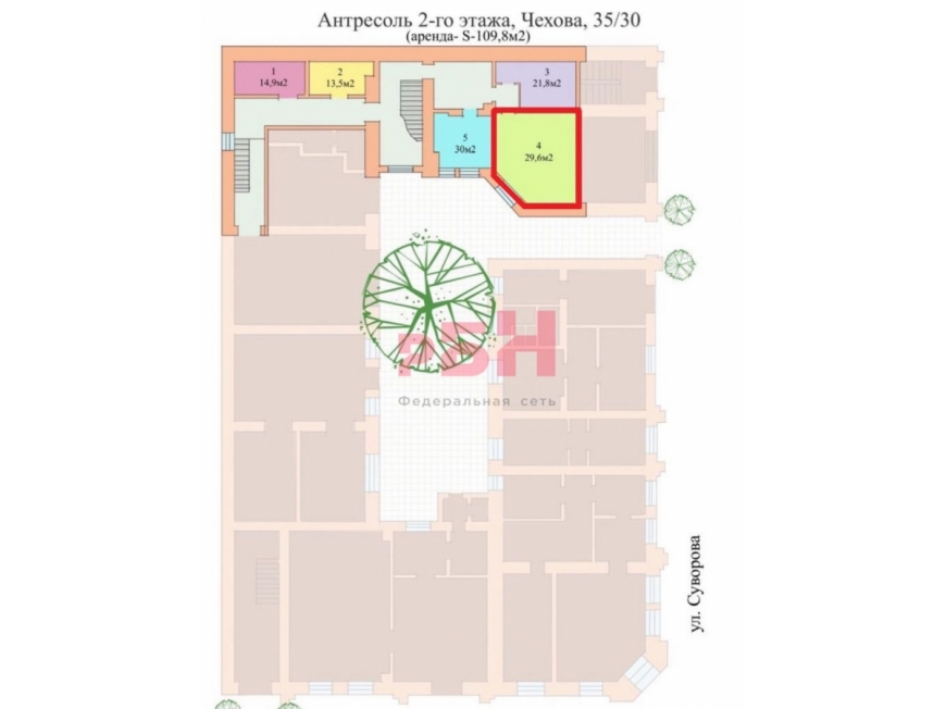 Сдается современное офисное помещение с ремонтом в активном Центре города площадью 29,6 кв.м по адресу г. Ростов-на-Дону, пр. Чехова, 35/30